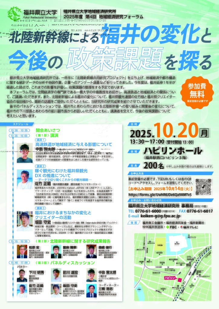 第4回地域経済研究フォーラム「北陸新幹線による福井の変化と今後の政策課題を探る」